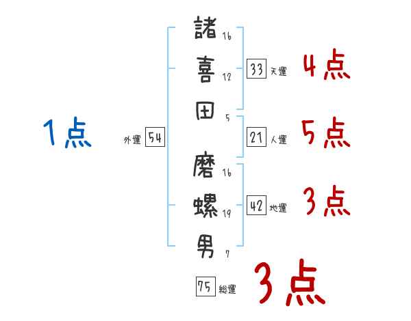 諸喜田磨螺男さんの画数の鑑定結果