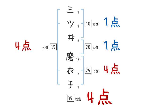 三ツ井磨衣子さんの画数の鑑定結果