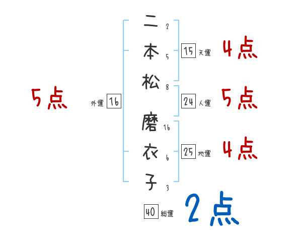 二本松磨衣子さんの画数の鑑定結果