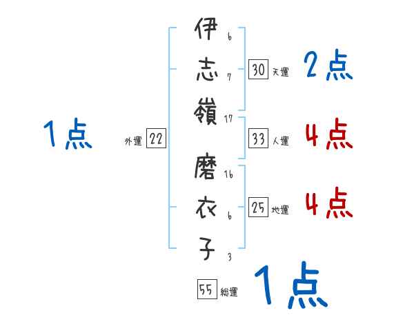 外運![]() | 伊志嶺磨衣子さんの外運は22画の1つ星!努力することが苦手ないっぽう手先が器用。芸術性にも優れる。 生活面を象徴する運勢です。外部から受ける影響力を表し、結婚運、家庭運や職場、環境への順応性を表します。 |