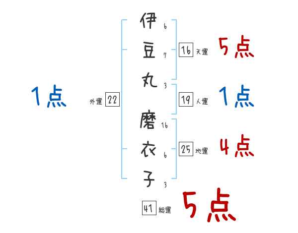 伊豆丸磨衣子さんの総運は41画の5つ星
