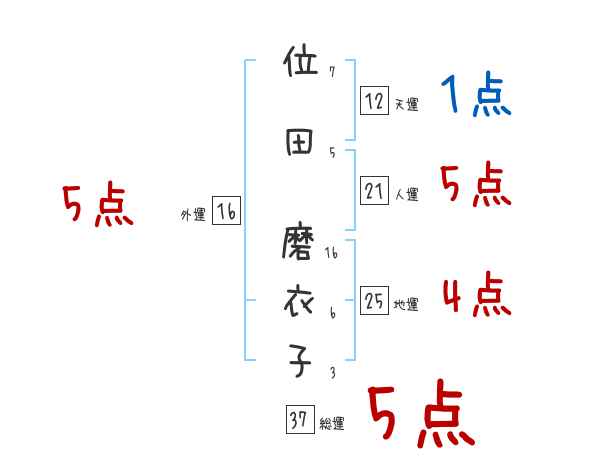 位田磨衣子さんの画数の鑑定結果