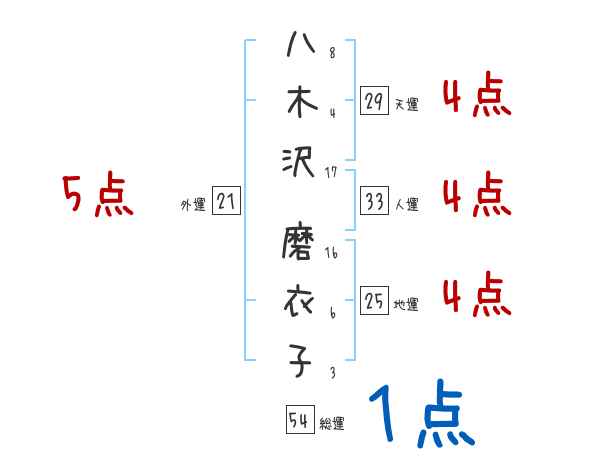 八木沢磨衣子さんの画数の鑑定結果