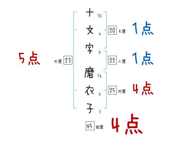 外運![]() | 十文字磨衣子さんの外運は23画の5つ星!想像力に優れ活力がある。一代で成功し名誉を手に入れる。 生活面を象徴する運勢です。外部から受ける影響力を表し、結婚運、家庭運や職場、環境への順応性を表します。 |
