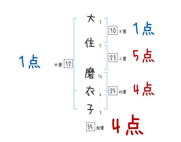 天運![]() | 大住磨衣子さんの天運は10画の1つ星!不安を感じやすい傾向。ストレスを抱えないように注意しましょう。 家系が持つ宿命的な運勢を表します。祖先から受け継いだ苗字ですので自分の力が及びません。家柄を象徴します。 |