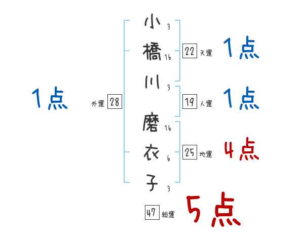外運![]() | 小橋川磨衣子さんの外運は28画の1つ星!家庭環境に注意。スポーツで活躍できる能力があるかも。 生活面を象徴する運勢です。外部から受ける影響力を表し、結婚運、家庭運や職場、環境への順応性を表します。 |