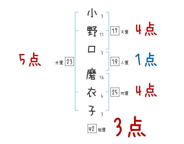 小野口磨衣子さんの画数の鑑定結果