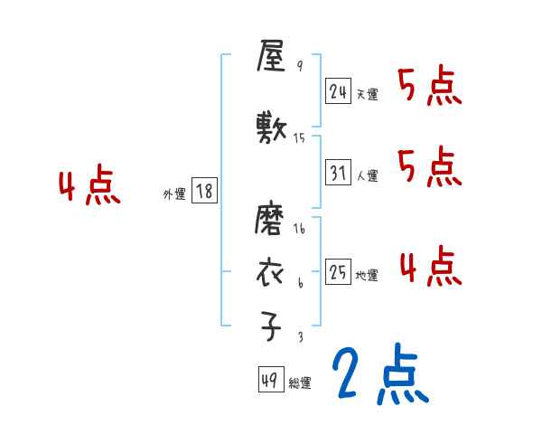 屋敷磨衣子さんの画数の鑑定結果