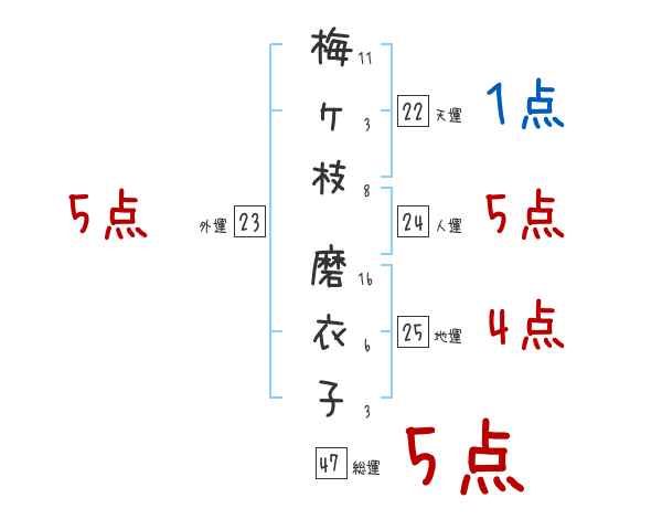 梅ヶ枝磨衣子さんの画数の鑑定結果