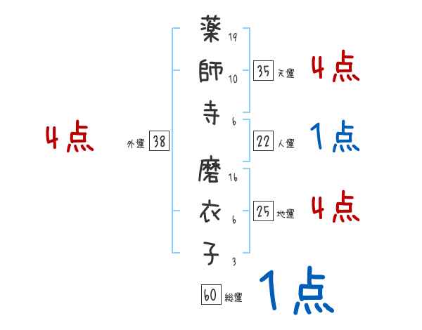 薬師寺磨衣子さんの画数の鑑定結果