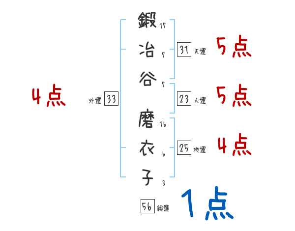 鍛冶谷磨衣子さんの画数の鑑定結果