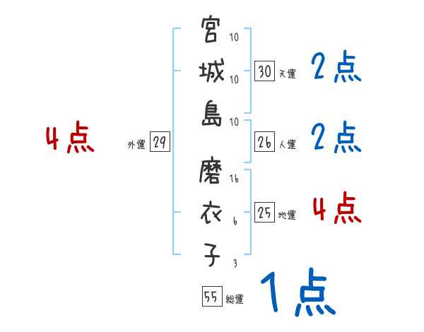 宮城島磨衣子さんの画数の鑑定結果