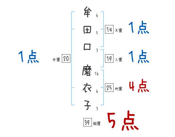 牟田口磨衣子さんの画数の鑑定結果