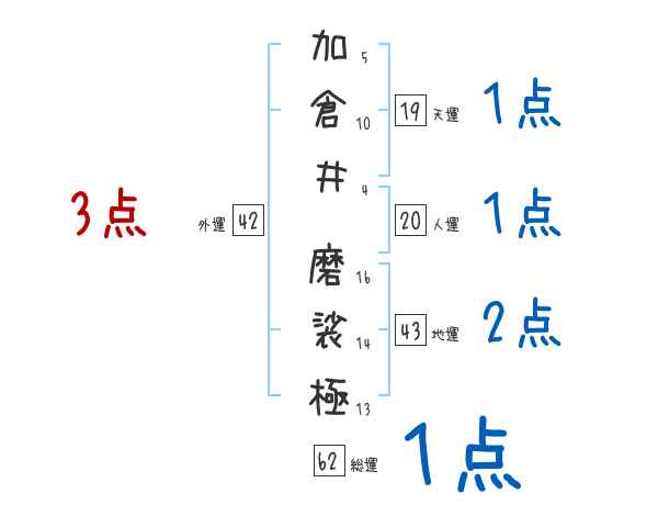 加倉井磨裟極さんの画数の鑑定結果