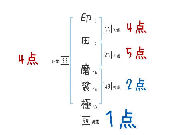 印田磨裟極さんの画数の鑑定結果