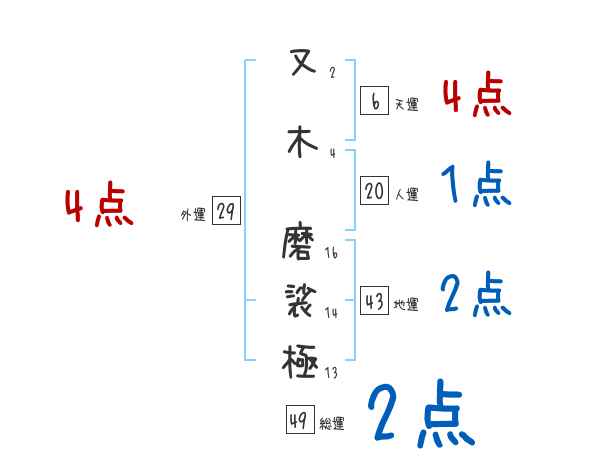 総運![]() | 又木磨裟極さんの総運は49画の2つ星!不安定な性格で明暗がある人生。周りの人には支援されやすい。 あなたの人生を表す1番重要な運勢です。生涯を通じて影響する総合運となり、主に50歳以降の晩年期に影響を及ぼします。 |