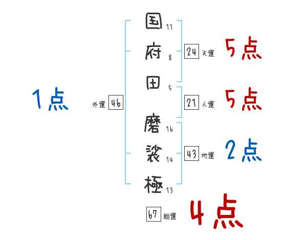 国府田磨裟極さんの画数の鑑定結果