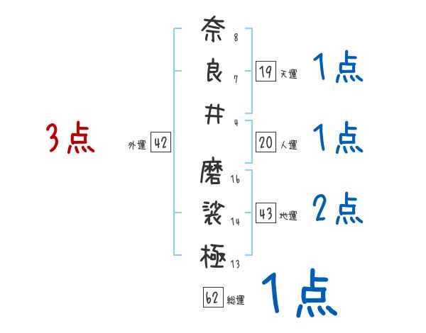 奈良井磨裟極さんの画数の鑑定結果