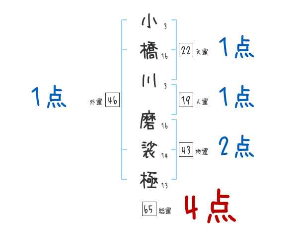 小橋川磨裟極さんの画数の鑑定結果