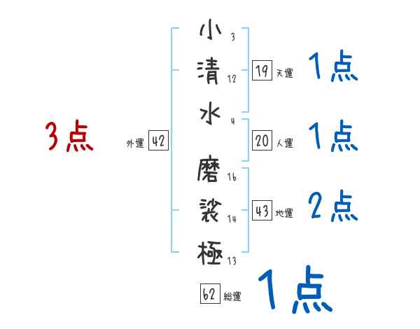 地運![]() | 小清水磨裟極さんの地運は43画の2つ星!頑固な性格で独立心が強いかも。やや非現実的で浪費に注意しましょう。 個性を表す基礎的な運勢です。性格形成や対人関係、行動力など家庭環境に影響されます。主に誕生してから20歳くらいまでの若年期の運勢を表します。 |