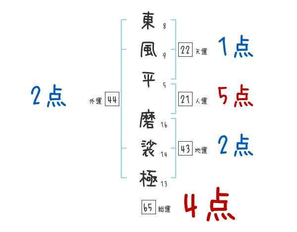 総運![]() | 東風平磨裟極さんの総運は65画の4つ星!幸運に恵まれ繁栄する。包容力がある。 あなたの人生を表す1番重要な運勢です。生涯を通じて影響する総合運となり、主に50歳以降の晩年期に影響を及ぼします。 |