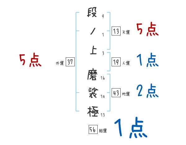 段ノ上磨裟極さんの画数の鑑定結果