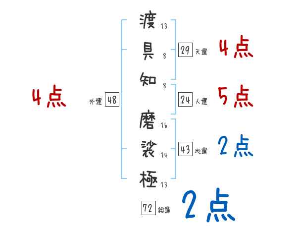渡具知磨裟極さんの画数の鑑定結果
