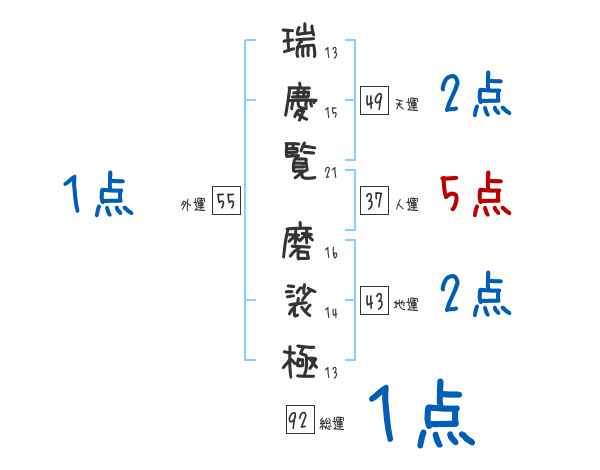 瑞慶覧磨裟極さんの画数の鑑定結果