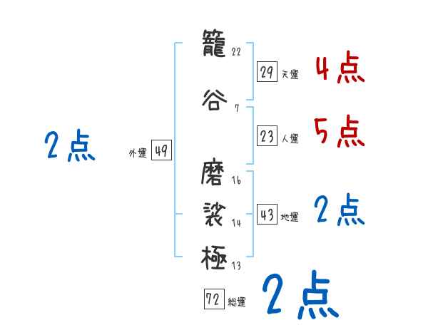 家系が持つ宿命的な運勢を表します。祖先から受け継いだ苗字ですので自分の力が及びません。家柄を象徴します。