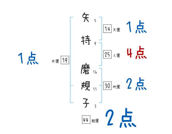 矢持磨規子さんの画数の鑑定結果