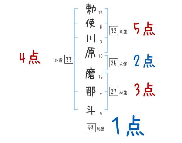 勅使川原磨那斗さんの画数の鑑定結果