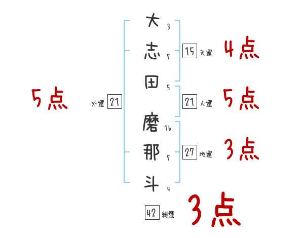 大志田磨那斗さんの画数の鑑定結果