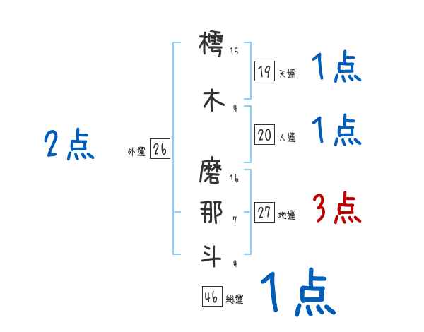 樗木磨那斗さんの画数の鑑定結果