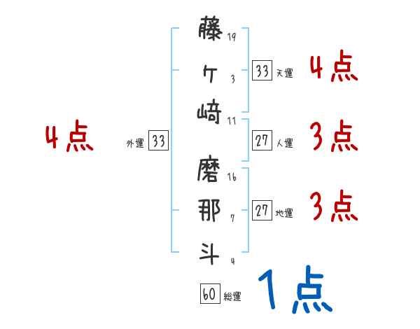 藤ヶ﨑磨那斗さんの画数の鑑定結果