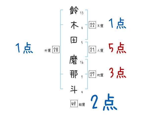 総運![]() | 鈴木田磨那斗さんの総運は49画の2つ星!不安定な性格で明暗がある人生。周りの人には支援されやすい。 あなたの人生を表す1番重要な運勢です。生涯を通じて影響する総合運となり、主に50歳以降の晩年期に影響を及ぼします。 |