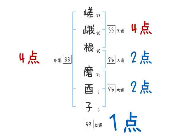 嵯峨根磨酉子さんの画数の鑑定結果