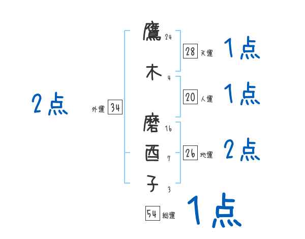 鷹木磨酉子さんの画数の鑑定結果
