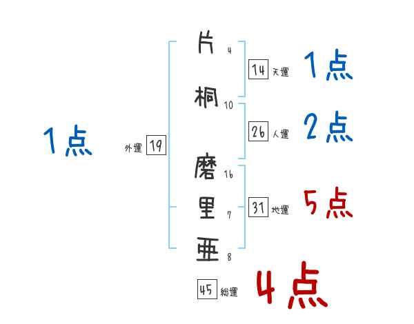 天運![]() | 片桐磨里亜さんの天運は14画の1つ星!人に対して優しいがストレスを溜め込みがち。人間関係のトラブルを避けるよう気をつけましょう。 家系が持つ宿命的な運勢を表します。祖先から受け継いだ苗字ですので自分の力が及びません。家柄を象徴します。 |