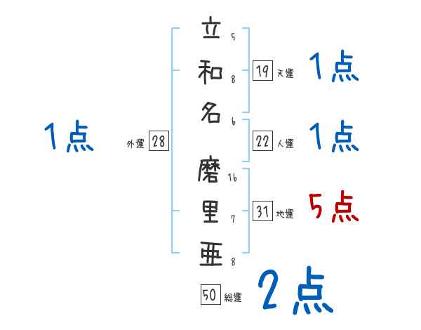 立和名磨里亜さんの画数の鑑定結果