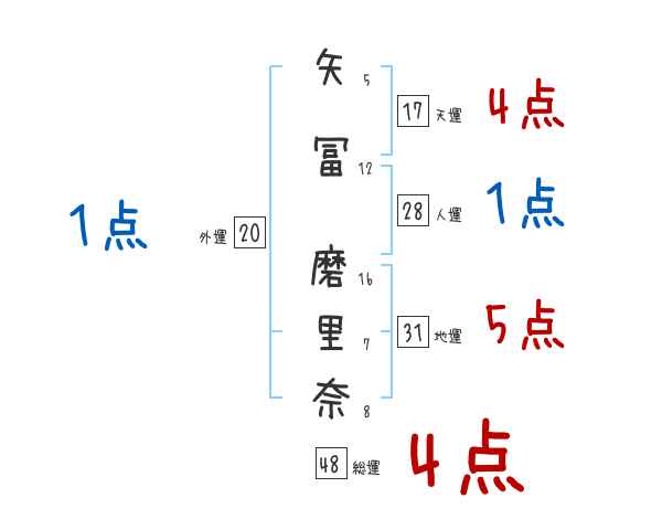 矢冨磨里奈さんの画数の鑑定結果