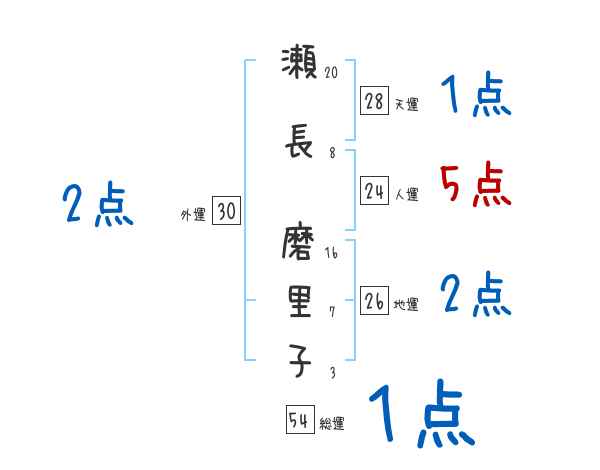 地運![]() | 瀬長磨里子さんの地運は26画の2つ星!波瀾万丈かも。信頼できる人を大事にしましょう。 個性を表す基礎的な運勢です。性格形成や対人関係、行動力など家庭環境に影響されます。主に誕生してから20歳くらいまでの若年期の運勢を表します。 |