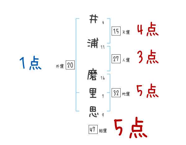 井浦磨里思さんの画数の鑑定結果