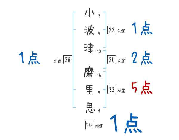 小波津磨里思さんの画数の鑑定結果