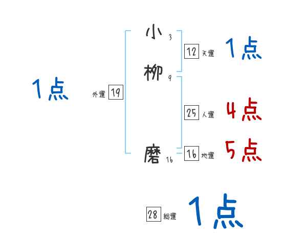 小栁磨さんの画数の鑑定結果