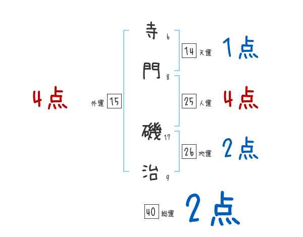 寺門磯治さんの画数の鑑定結果