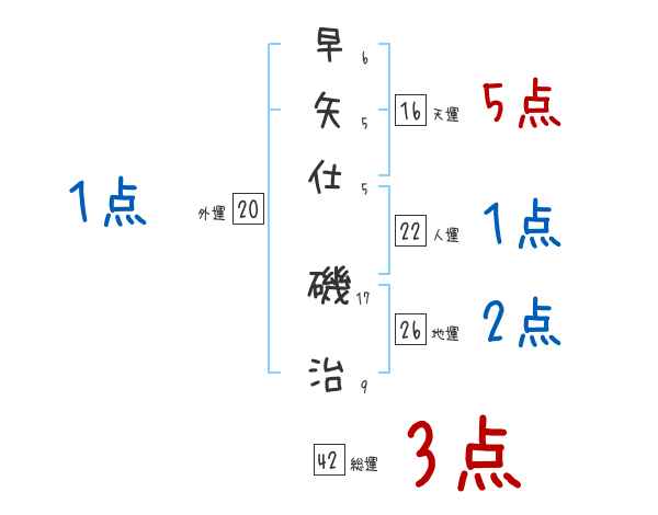 早矢仕磯治さんの画数の鑑定結果