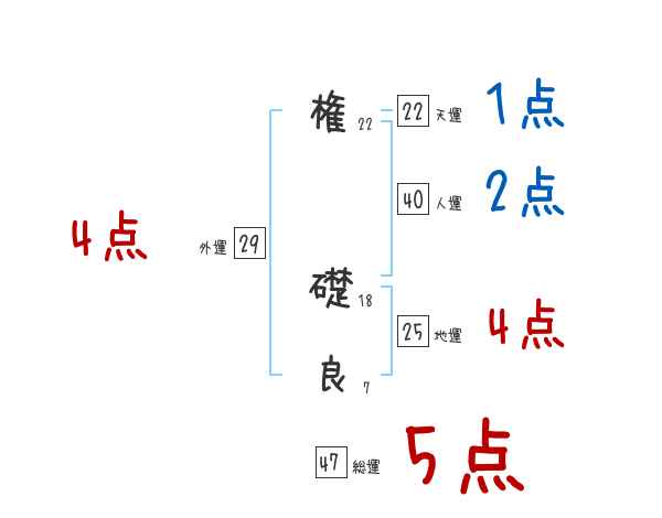 権礎良さんの画数の鑑定結果