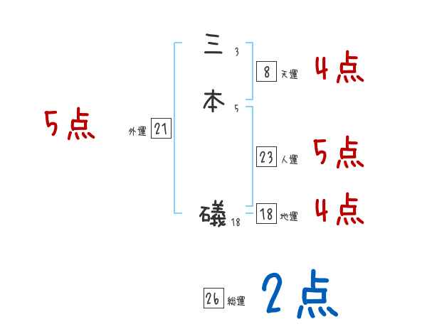 三本礒さんの画数の鑑定結果