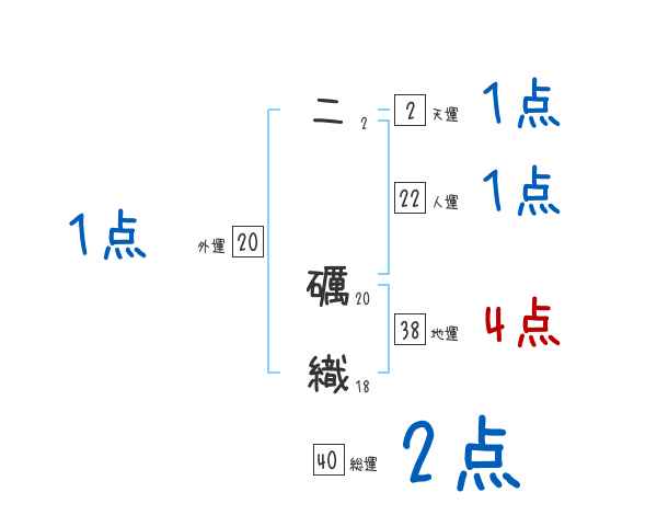 人運![]() | 二礪織さんの人運は22画の1つ星!努力することが苦手ないっぽう手先が器用。芸術性にも優れる。 性格や才能などを表す2番目に重要な運勢です。人間関係や協調性、社会的な成功に影響します。主に20歳から50歳ぐらいまでの中年期の運勢を表します。 |