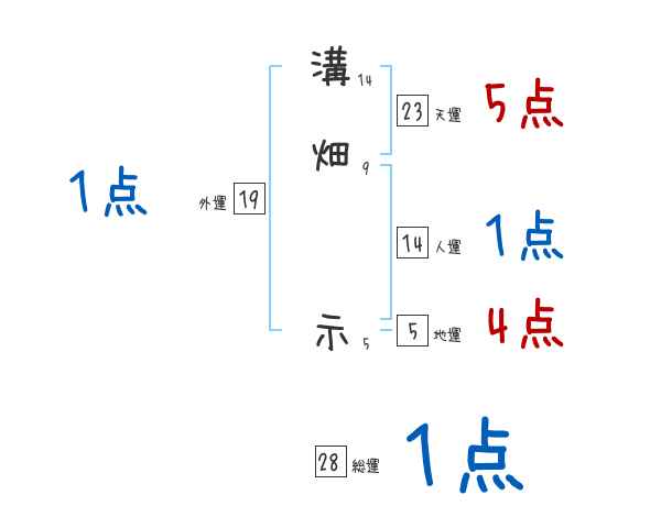 天運![]() | 溝畑示さんの天運は23画の5つ星!想像力に優れ活力がある。一代で成功し名誉を手に入れる。 家系が持つ宿命的な運勢を表します。祖先から受け継いだ苗字ですので自分の力が及びません。家柄を象徴します。 |